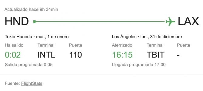No, los pasajeros del vuelo no realizaron un viaje en el tiempo, lo que sucedió es que el vuelo 106 despegó dos minutos después de las 00:00 horas desde el AAeropuerto de Tokio Haneda y aterrizó en el Aeropuerto Internacional de Los Angeles a las 16:45 del 31 de diciembre.